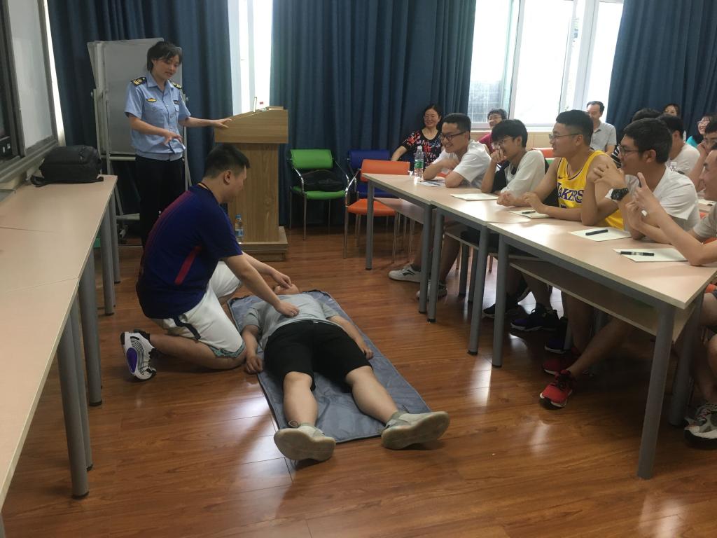 本次培训由重庆市利民防火中心万州分部洪格教官作专题讲演,教学质量监控与评估处副处长郭兰主持。培训共分为两个阶段。第一阶段,洪格教官就紧急救助措施进行了演示及培训:一是心肺复苏法,二是海姆立克急救法。同学们认真观摩,积极参与演练,对实施紧急抢救的知识和技能有了更深的认识和提高。